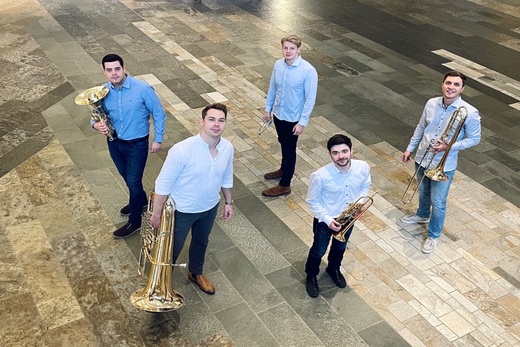 Das Ensemble Bright Brass besteht aus Julius Scholz, Samuel Walter (beide Trompete), Lionel Speciale (Horn), Szabolcs Katona (Posaune) und Peter Kánya (Tuba). ©Camila Massi LIzarraga