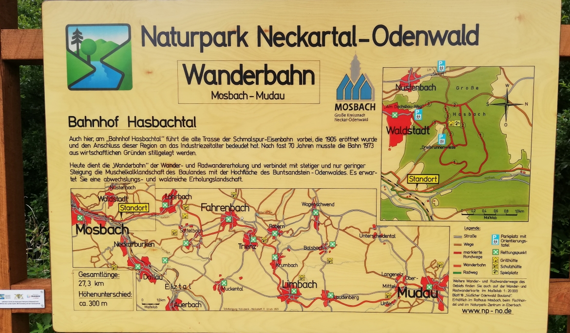 Auf 20 Rundwegen des Naturparks Neckartal-Odenwald können Erholungssuchende die Natur in Mosbach und seinen sieben Stadtteilen erkunden. Elf Naturpark-Wanderparkplätze stellen dazu eine naturverträgliche Infrastruktur bereit, die mit den unverkennbaren Wanderparkplatztafeln aus der Werkstatt des Naturparks dazu noch Orientierung und Besucherlenkung bieten.