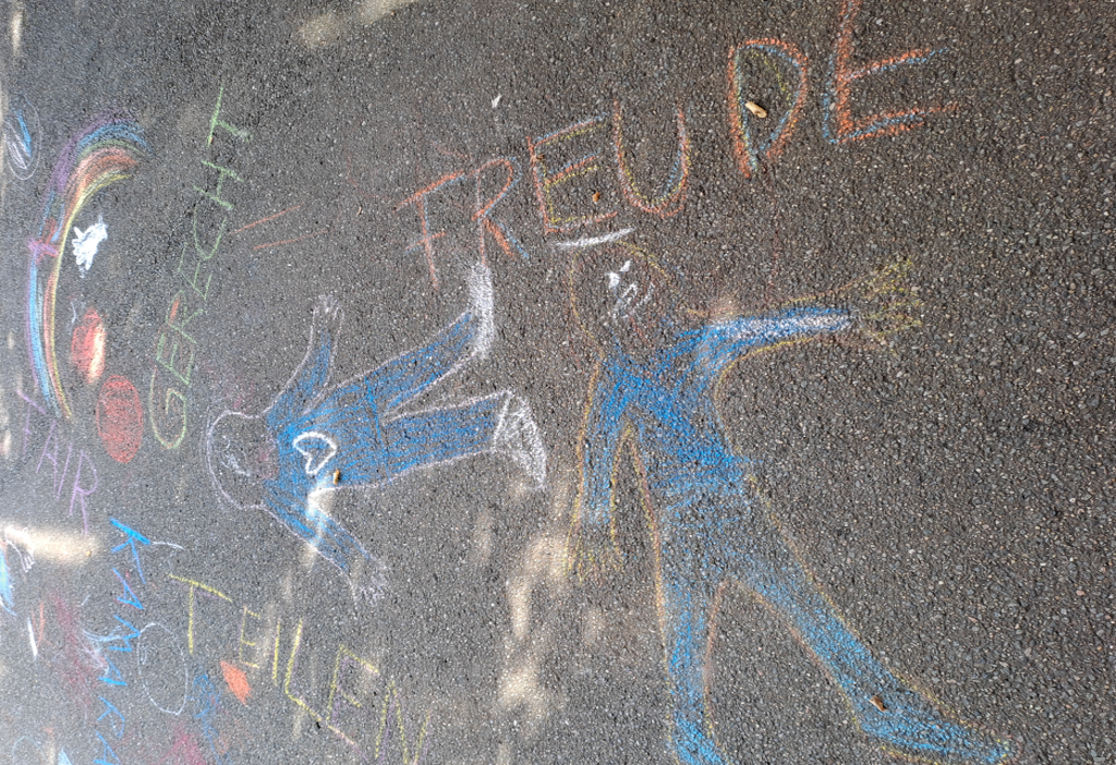 - Kirchengemeinde MOSE & Arbeitsgruppe fair.nah.logisch: Kreidesprüche zum Nachdenken und Weiterdenken vor Einrichtungen der Kirchengemeinde MOSE am 15. und am 29. September. Foto hierzu: siehe unten.