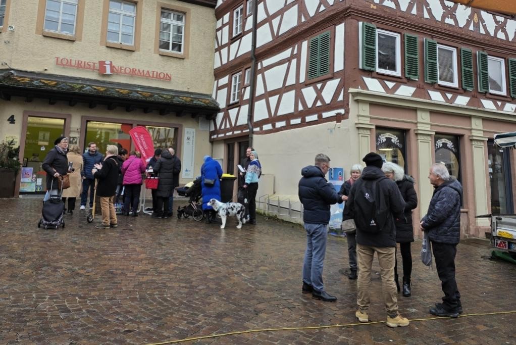 Der Wochenmarkt auf dem Marktplatz bot am Mittwoch, den 14. Januar ab 11 Uhr den Rahmen für eine Befragung im Rahmen des Arbeitskreises „Strategie Innenstadt“. Neben der persönlichen Vor-Ort-Befragung durch Vertreter des Arbeitskreises Innenstadt wie OB Julian Stipp und Innenstadtkümmerer Christian Polland, besteht auch die Möglichkeit, sich online an der Befragung zu beteiligen.