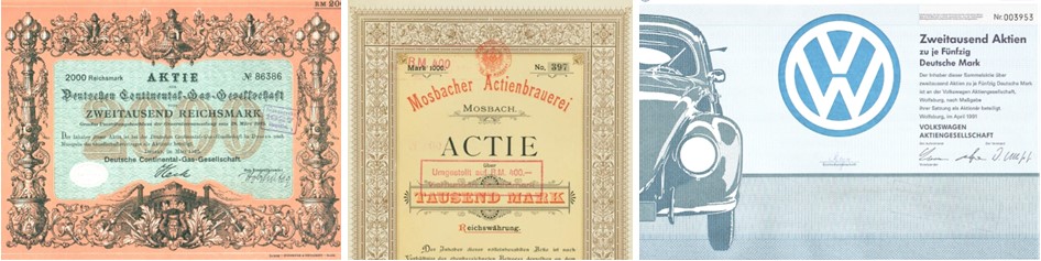 Hübner, Siemens und Beate Uhse - Historische Aktien