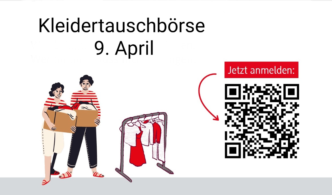 Die Anmeldung zum Workshop ist mittels QR-Code möglich. Die Tauschbörse bietet die Chance, nachhaltig und ressourcenschonend Kleidungsstücken ein längeres Leben zu geben. Darüber hinaus kann man sich über die Herstellungsbedingungen von Kleidung informieren und erfahren, wie der Fairtrade-Handel zu verbesserten Lebens- und Produktionsbedingungen im Textilanbau und -handel beiträgt.