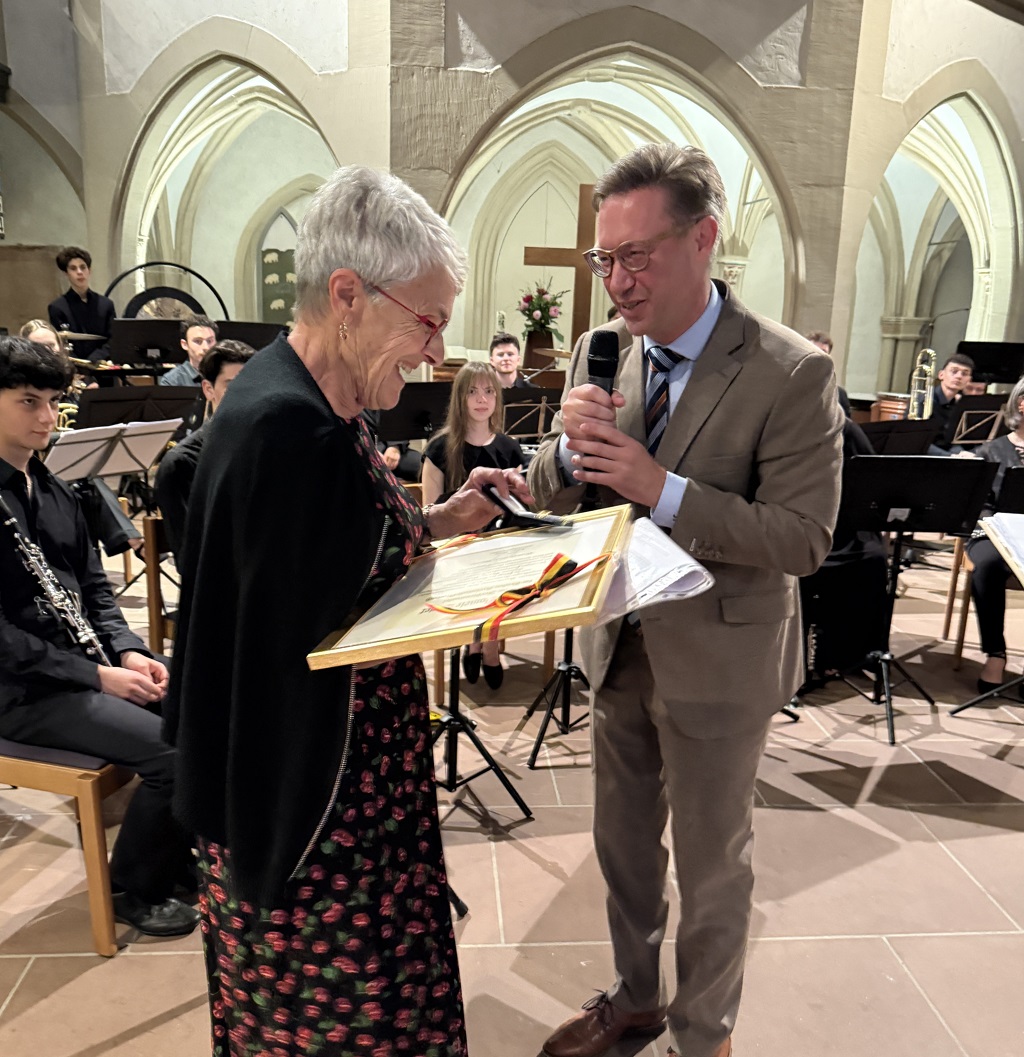 In einer feierlichen Zeremonie in der Stiftskirche hat Oberbürgermeister Julian Stipp am Samstagabend Danièle Briet mit der Mosbacher Verdienstnadel und somit einer der höchsten Ehrungen der Großen Kreisstadt ausgezeichnet.