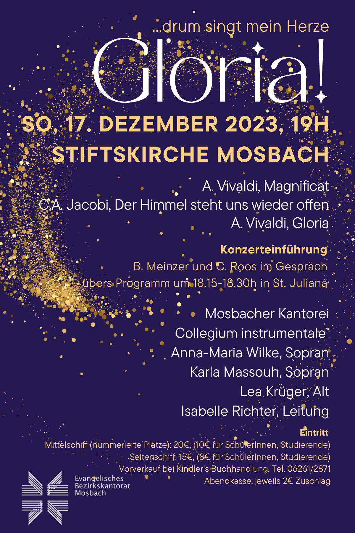 Programm: Magnificat (A.Vivaldi), Kantate „Der Himmel steht uns wieder offen“ (C.A. Jacobi), Gloria (A.Vivaldi)