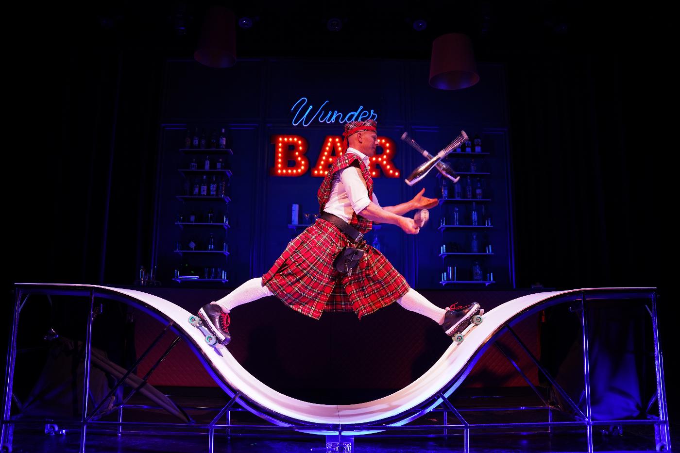 TJ-WHEELS löst Staunen und Begeisterung im Publikum aus, während er in einer 60 Zentimeter schmalen Bühnen-Halfpipe auf Rollschuhen verschiedenste Gegenstände jongliert. Mit seiner unglaublichen Koordination und seiner charmanten Art als Entertainer beweist er, dass diese Show das Coolste ist, was auf Rollschuhen zu bieten ist.