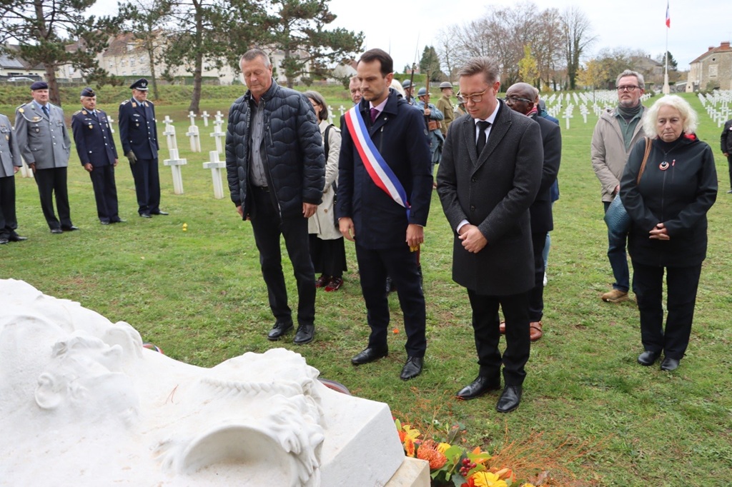Anlässlich des Volkstrauertages hat Mosbachs Oberbürgermeister Julian Stipp am vergangenen Sonntag an einer deutsch-deutsch-französischen Gedenkveranstaltung in Mosbachs französischer Partnerstadt Château-Thierry teilgenommen.