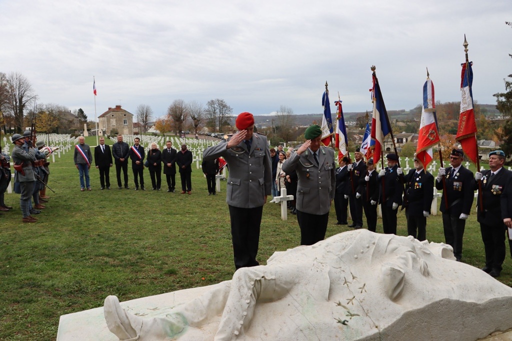 Die Gedenkfeierlichkeiten begannen auf dem französischen Soldatenfriedhof Nécropole des Chesneaux in Château-Thierry. Neben französischen Fahnenträgern und Veteranen nahmen an der Kranzniederlegung deutsche Reservisten aus der Region Rhein-Neckar-Odenwald (Hans-Jürgen Krauß, Rudi Joho, Manfred Hummel, Ralph Schulz) sowie aus Pößneck teil. Im Anschluss folgte eine von musikalischen Beiträgen begleitete Zeremonie auf dem deutschen Soldatenfriedhof Torcy/Belleau.