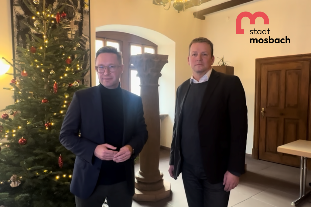 Die Stadt Mosbach wünscht Ihnen frohe Feiertage. Oberbürgermeister Julian Stipp und Bürgermeister Patrick Rickenbrot grüßen alle Mosbacherinnen und Mosbacher per Video.
